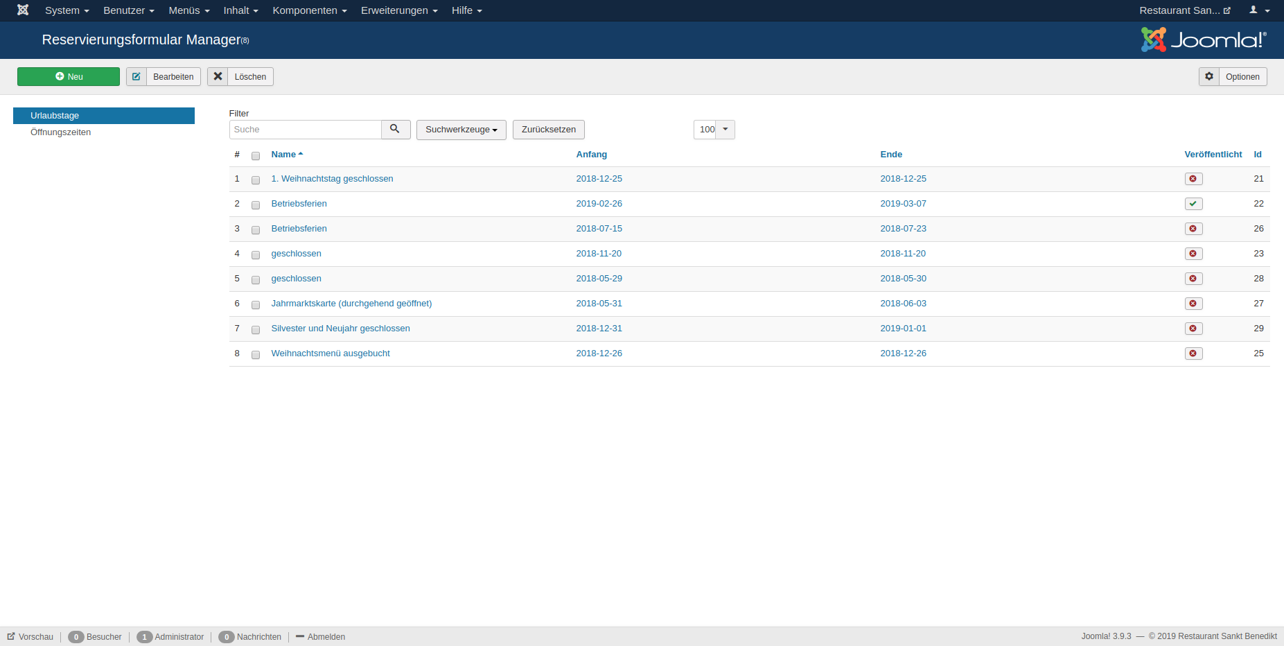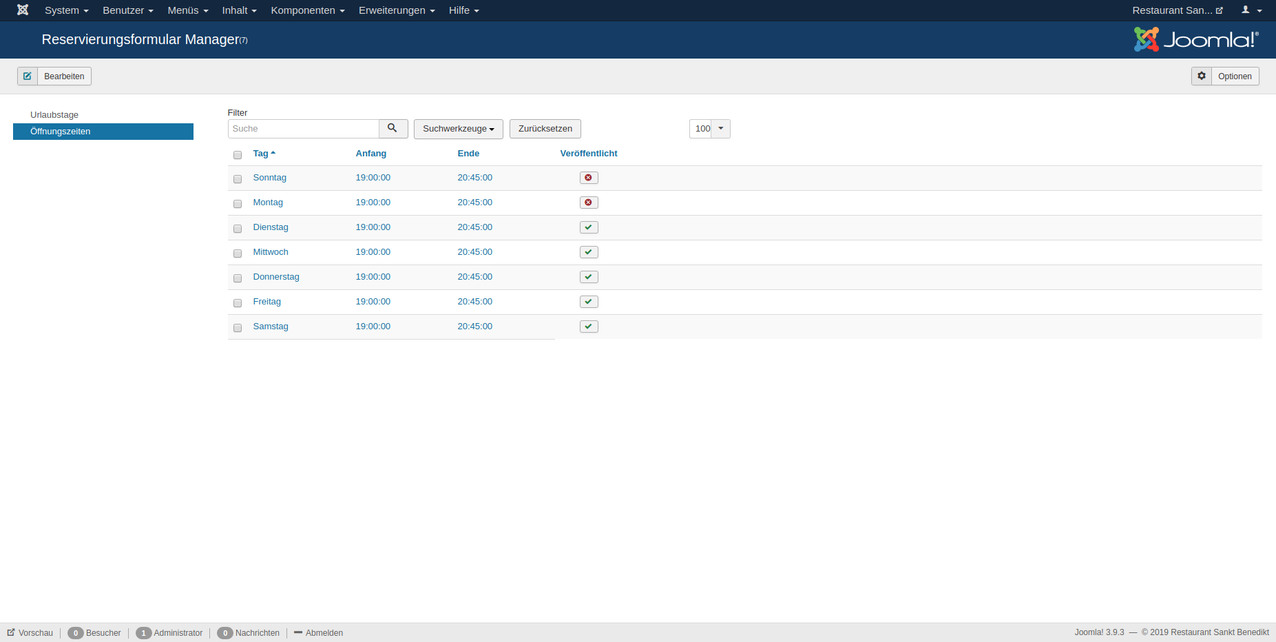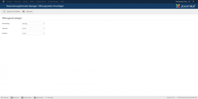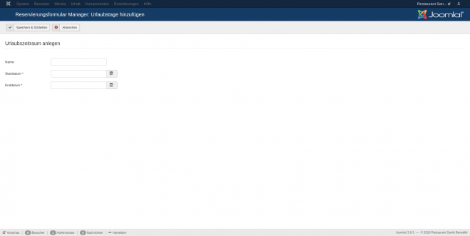 For the reservation form I developed a custom component. This should use the included functions of Joomla! In addition, I used the jQuery calendar library for the frontend of the component.