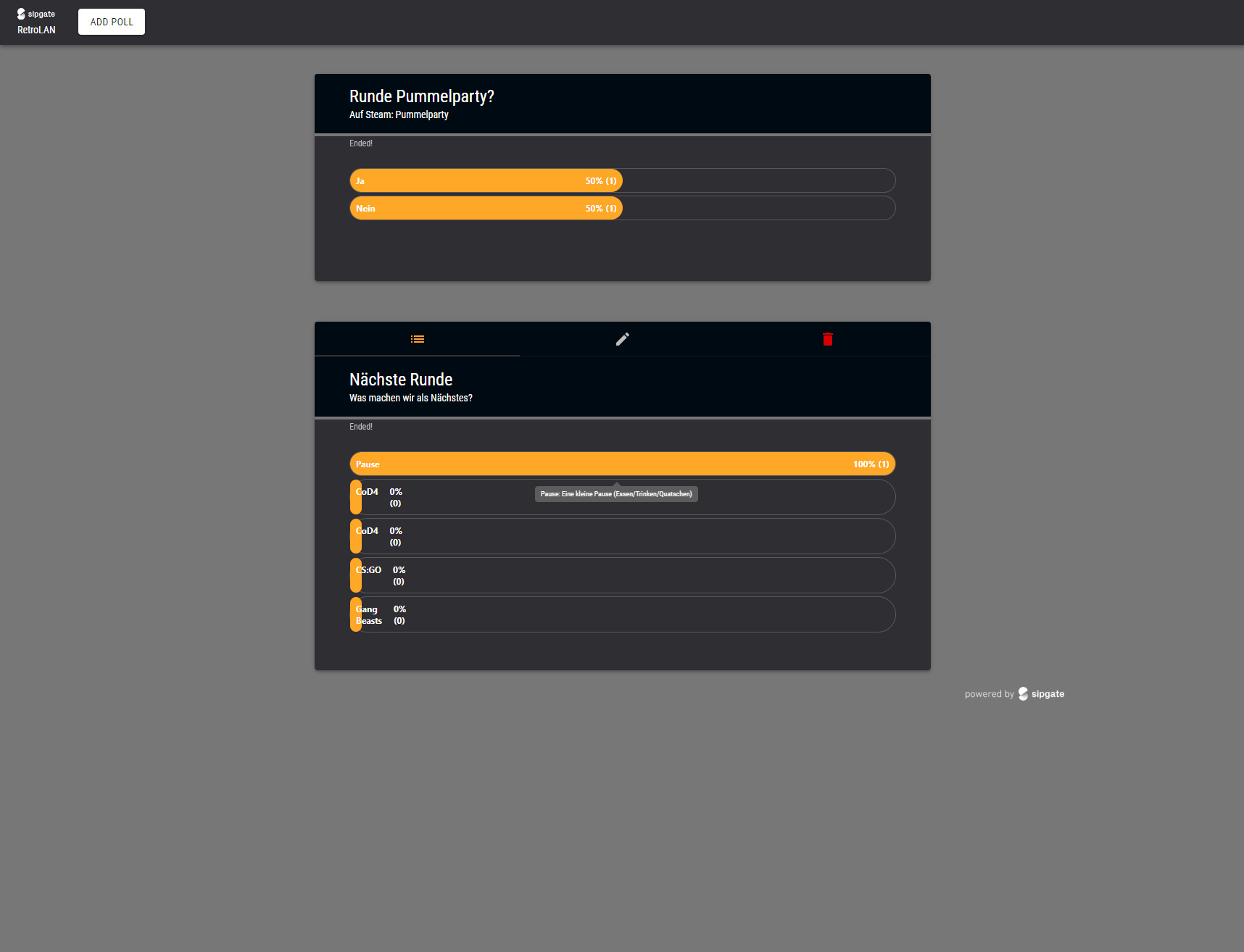 A proper voting tool was needed for the annual Retro LAN. More and more employees and accompanying persons led to more organizational effort. At a well-attended LAN with more >50 gamers, the simple question "What are we playing next?" sometimes led to a lengthy discussion. Food orders with different requirements and tastes? difficult... This should change in the future! So this little side project of mine was born.